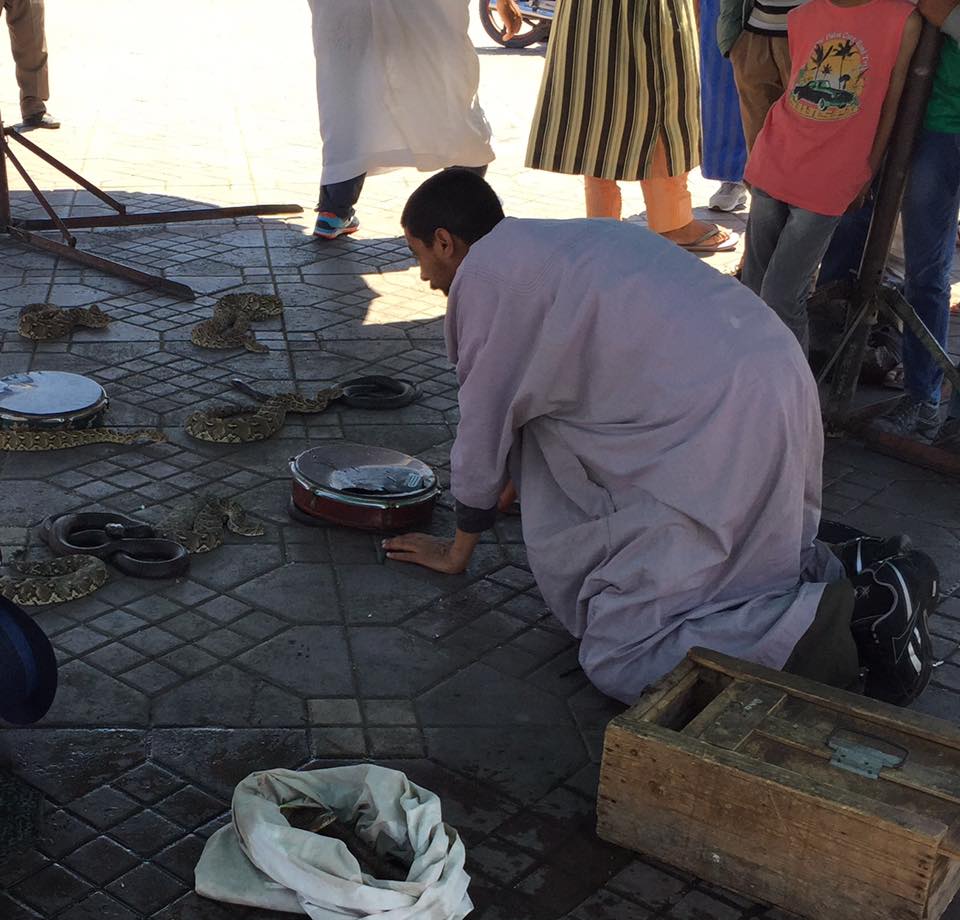 Okay, so, Jimmy Stewart and Doris Day take their young son on a holiday to Marrakech. After having dinner with two odd Brits, the next day they head into Jemaa el-Fnaa, the main square deep in the Medina. The camera follows them as the enormous marketplace is slowly revealed.