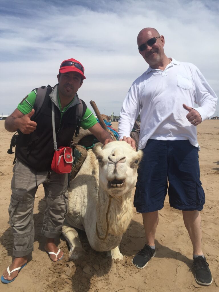 Mustafa’s herd of camels is nine strong, all looked well-tended, and I rode on Lawrence of Arabia while he led on Forrest Gump. He talked about his dreams of starting a camel milk business in two years, as well as spoke of his fiancé, a French tourist he fell in love with three years ago. They’ve lived together in a romance that he fears will crumble because she doesn’t believe in God. He doesn’t want her to convert to Islam, really, but he told me that he just wants her to believe “in something!” His eyes looked down at the sand. I joked with him that I’d be sure to include that in my TripAdvisor review.